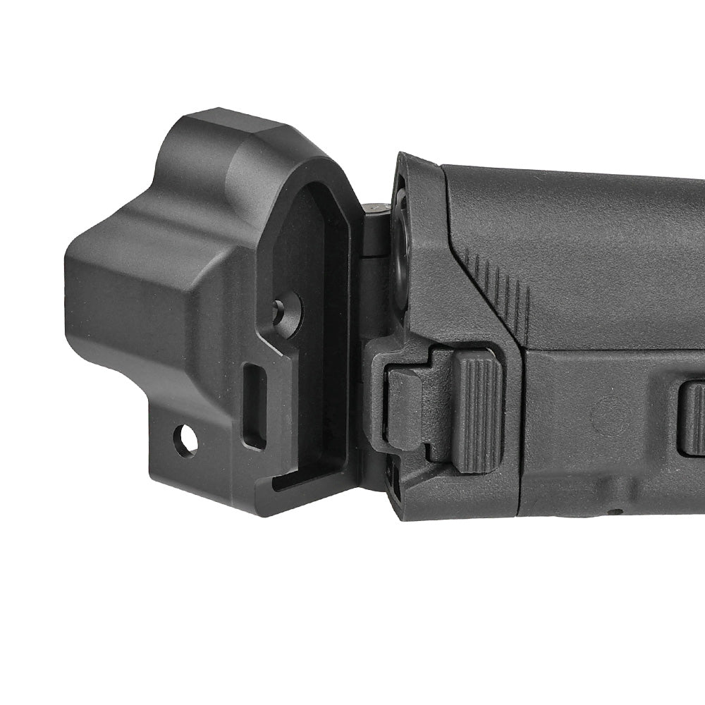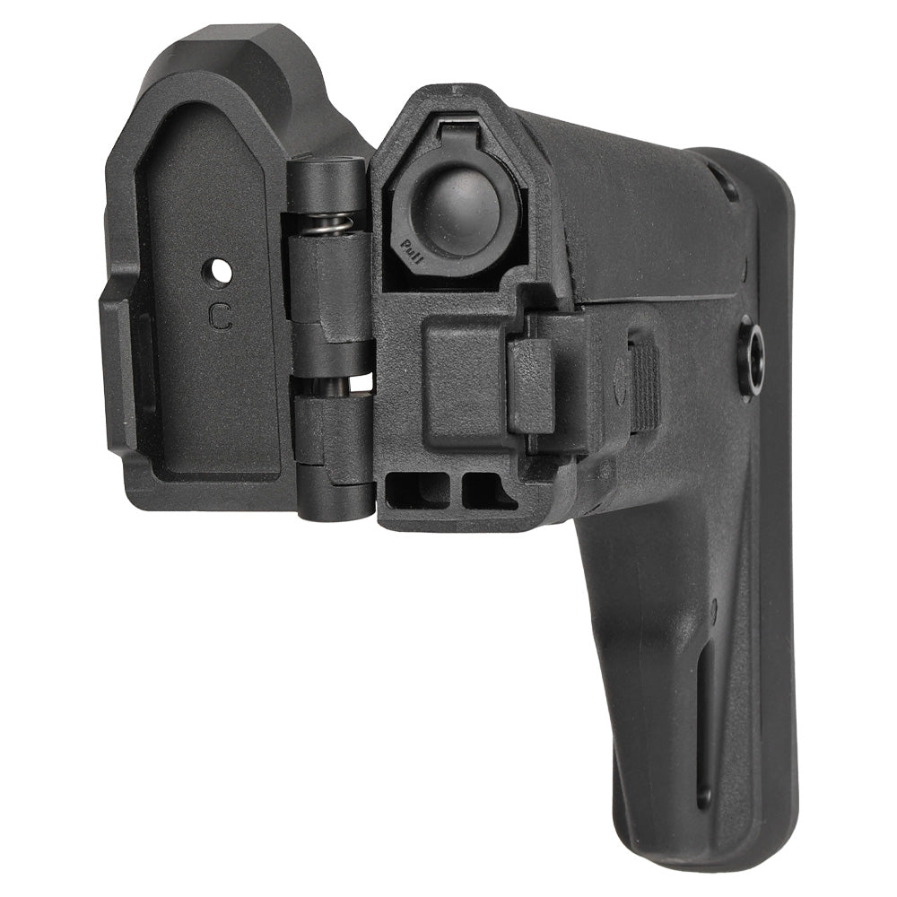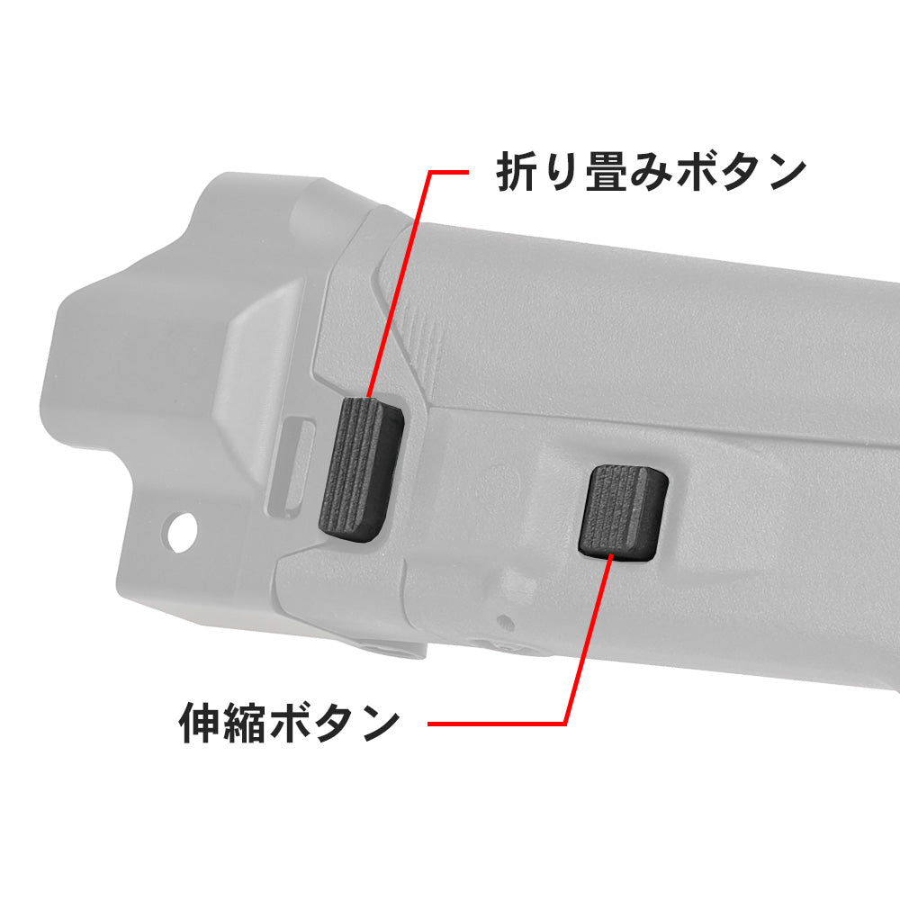 折り畳み機能により収納や持ち運びもしやすく、サブマシンガンらしい取り回しの良さを残しつつ、固定ストック並みの安定性を得られる点も魅力です。