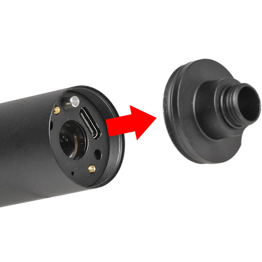 ネジ切り側は取り外し可能になっており、開けると「操作ボタン」と「USB Type-C 差込口」が現れます。