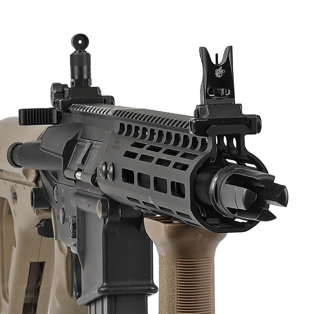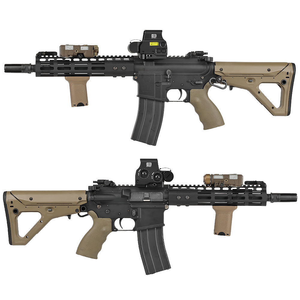 実物は米陸軍・海兵隊をはじめ、世界中の法執行機関や民間シューターに広く採用されており、軍用ライフルはもちろん、民間仕様のライフルにも自然にマッチします。