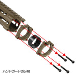 ネジは必ず均等に締め付けてください。適当に締め込むと、ハンドガードが傾いてしまう場合があります。