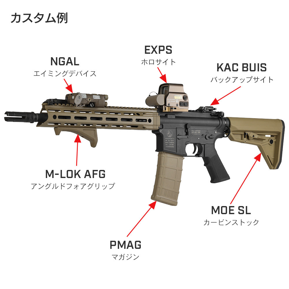 各社スタンダード電動ガン/ガスガン M4シリーズに対応しており、幅広い機種に装着可能。