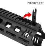 トップレールには「内蔵式のフリップアップ式フロントサイト」も再現されており、装着スペースや他の機器との干渉を大幅に軽減できます!