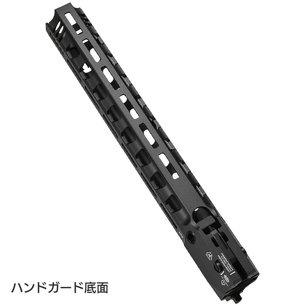 ハンドガードを瞬時に脱着できる「レバー式QDシステム」をリアルに再現。ラッチ操作だけで数秒で取り外し可能です。