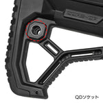 本ストックではラッチが逆側に配置されているため、ストックを握っても誤って操作してしまうリスクを抑えた設計となっています。