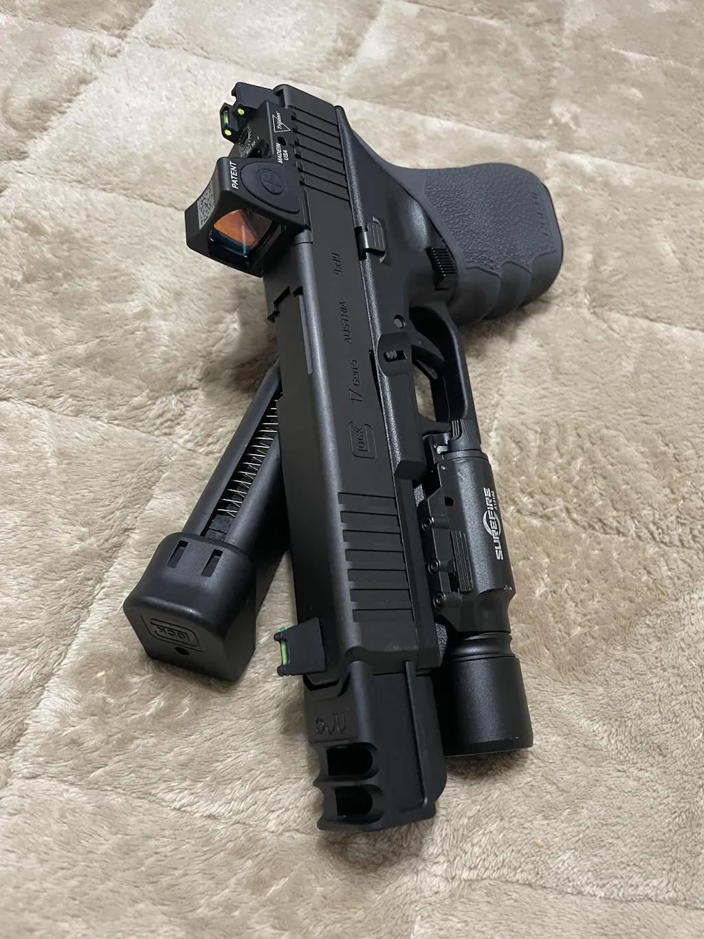 20mmレイルに対応した背の低いローマウントを標準搭載しています。