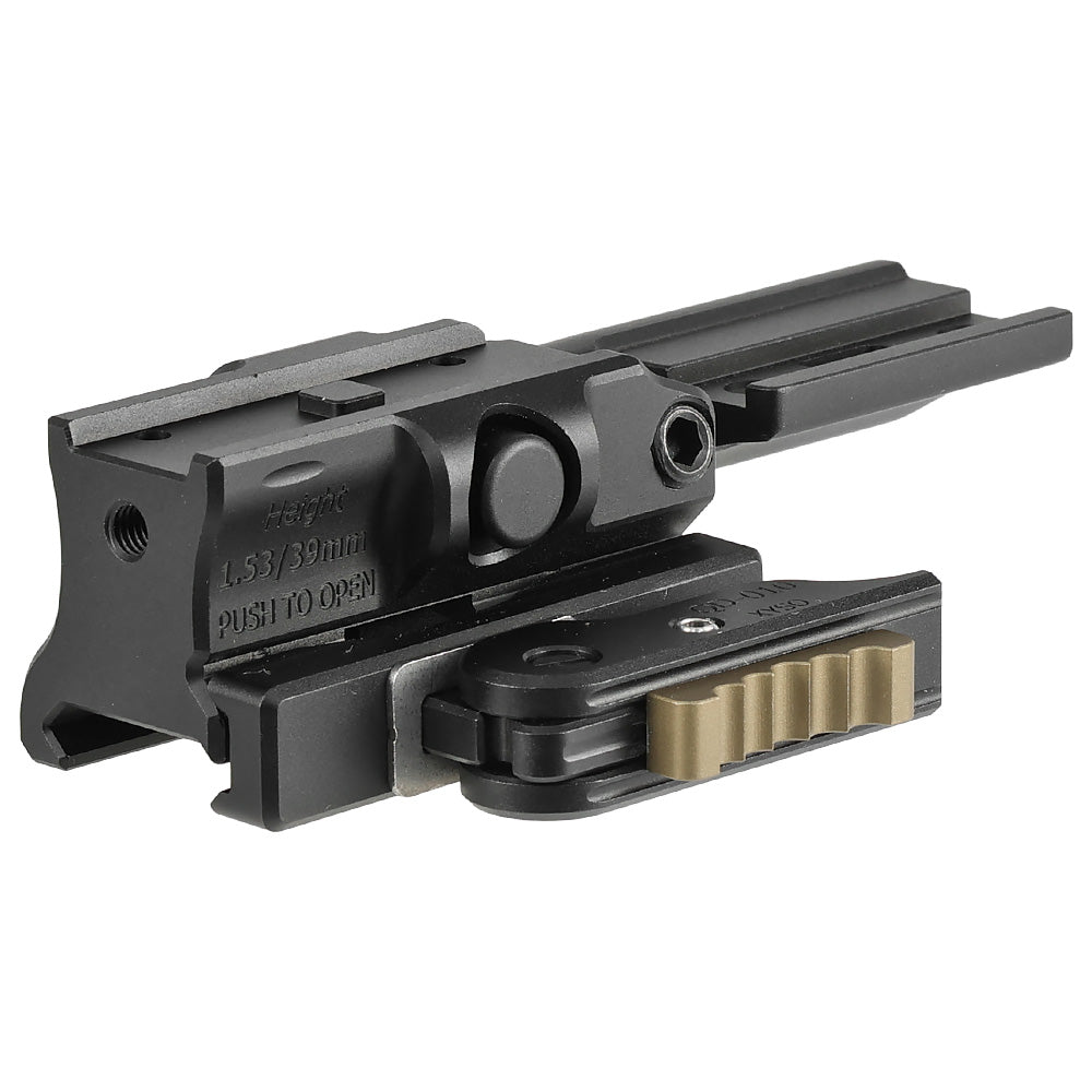 マウントの高さは1.53インチ(約38.8mm)で、一般的に「ハイマウント」と呼ばれる高さ。M4系などではストックにしっかり頬付けして狙える高さです。