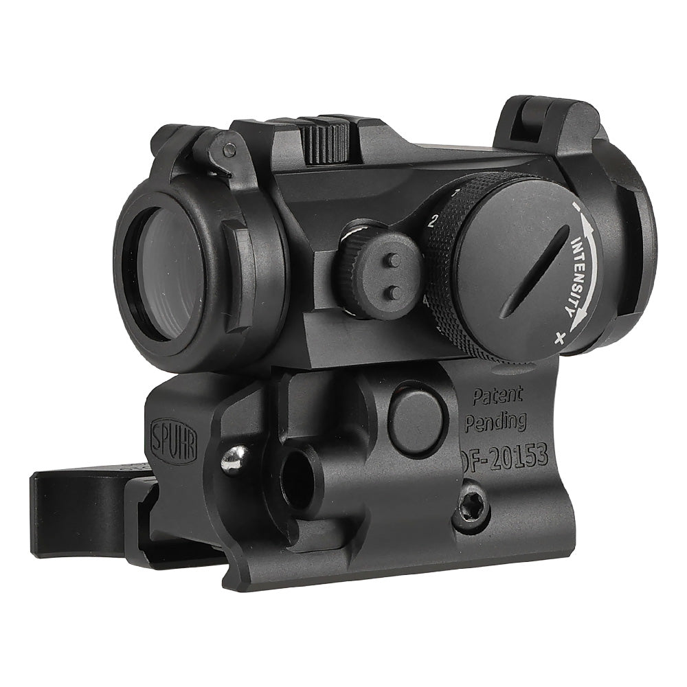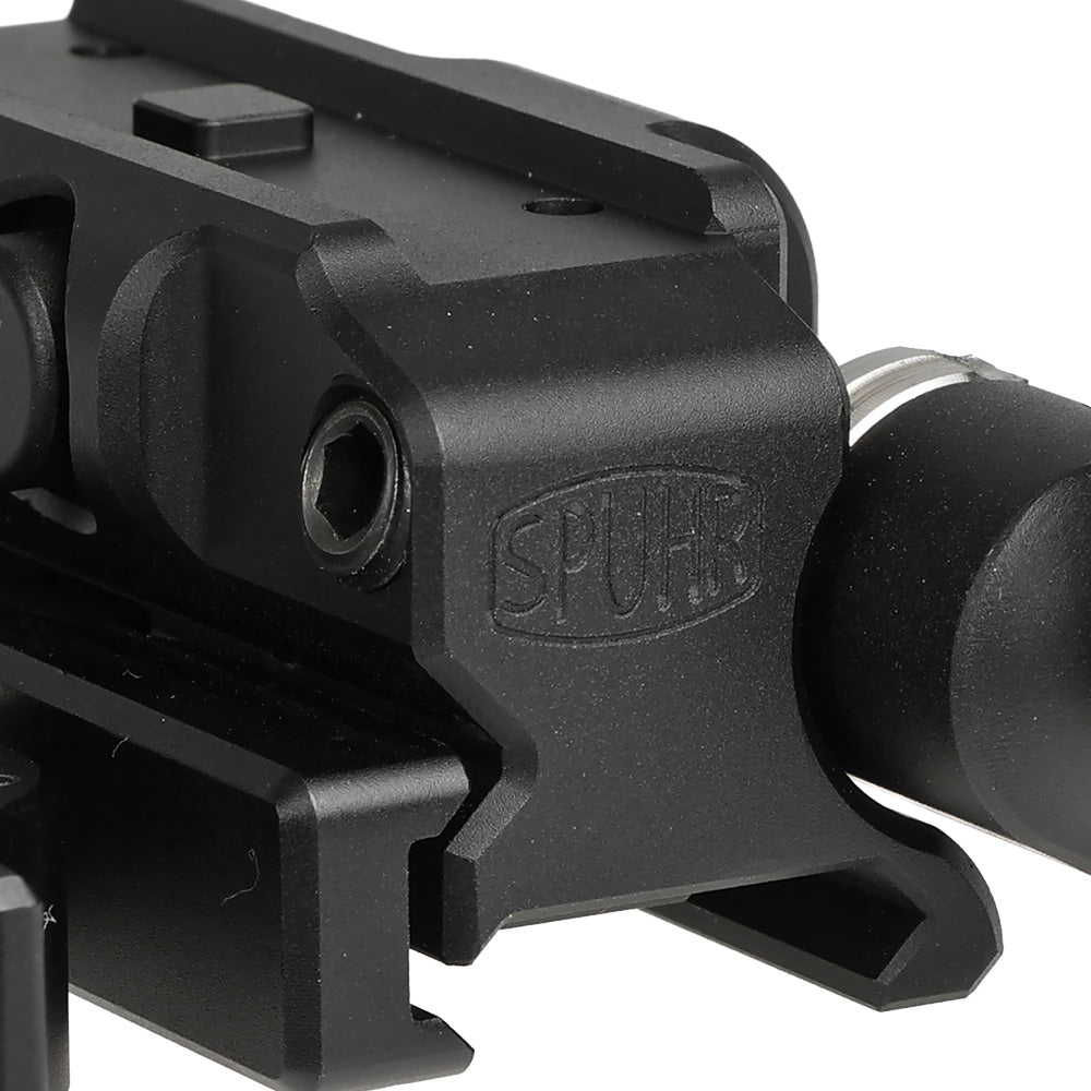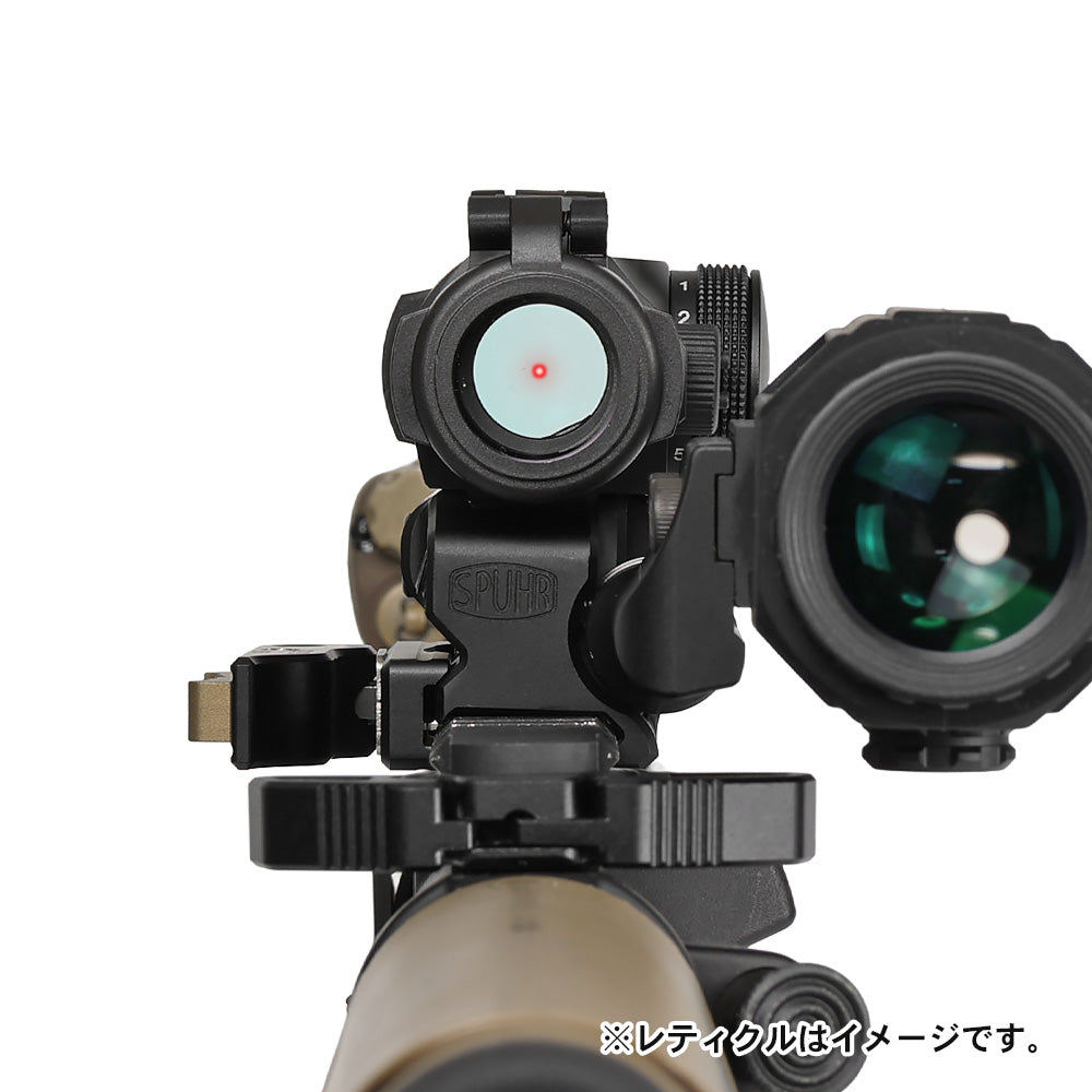 エアガンの20mmレールに対応。SPUHR独自のQDレバーマウントが再現されており、ワンタッチで簡単にエアガンへ取り付け可能です。