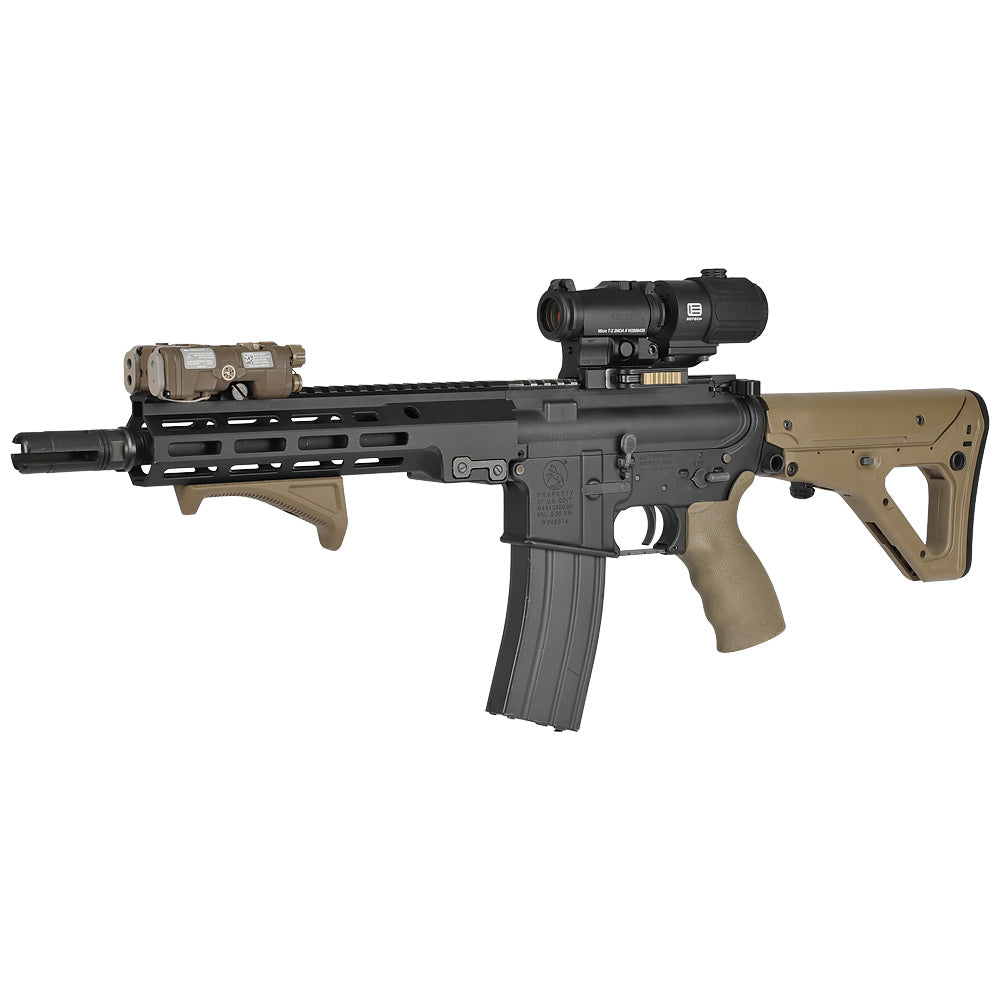 遠距離ではマグニファイアでスコープ感覚に、近距離ではドットサイトに切り替えるなど、シチュエーションに応じて柔軟に運用できます。
