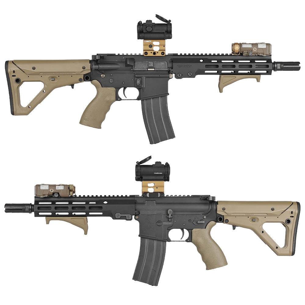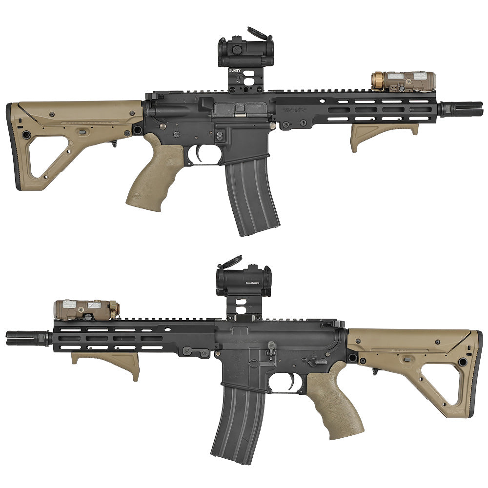 さらに、ハイ/ロースタンス(銃口を上または下に向けた状態)からの素早い射撃姿勢への移行もスムーズで、CQBにおける取り回しも良好です。