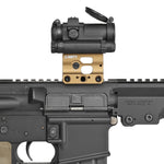 装着時のレティクル位置は「20mmレール面から約2.26インチ(約57.4mm)」となり「素早い照準」「広い視野」「フェイスガードやNVG、ガスマスクとの干渉回避」といったメリットを得られます!