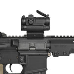 フロントサイトとレティクルが重ならないため、M4カービン系の固定式フロントサイト(デルタポスト)との併用にも適しています。