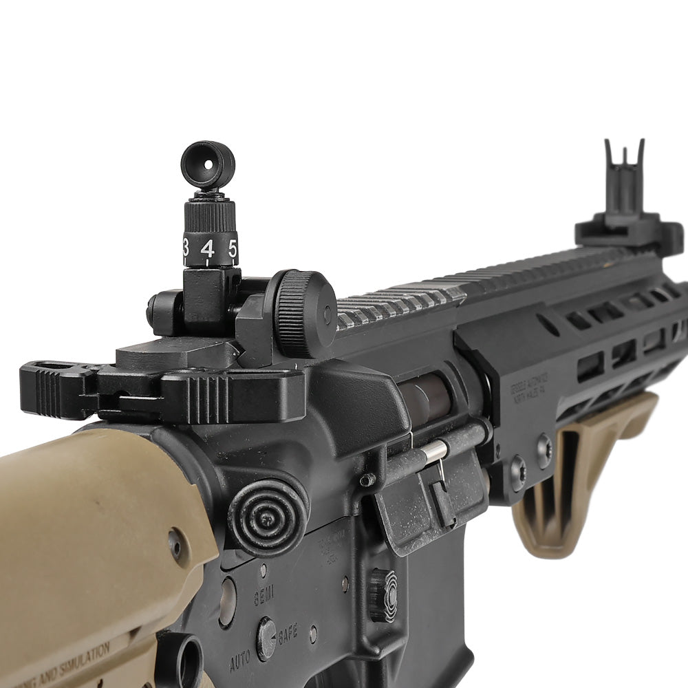 実物は米軍特殊作戦用「SOPMODライフルシステム」に採用された折りたたみ式フロントサイトで、米陸軍・海兵隊をはじめ、世界中の法執行機関やシューターに使用されています。