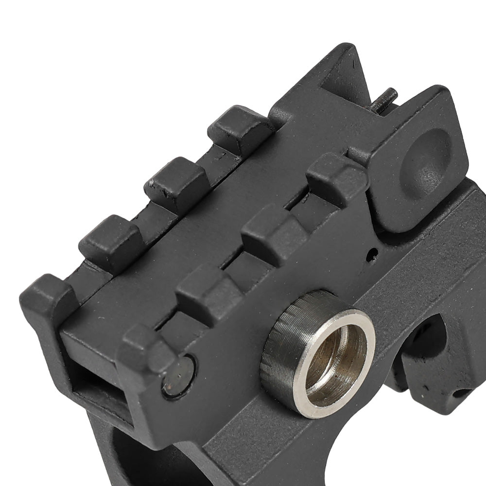 使用しない時は倒しておくことで、ドットサイトやスコープの視界を妨げません。