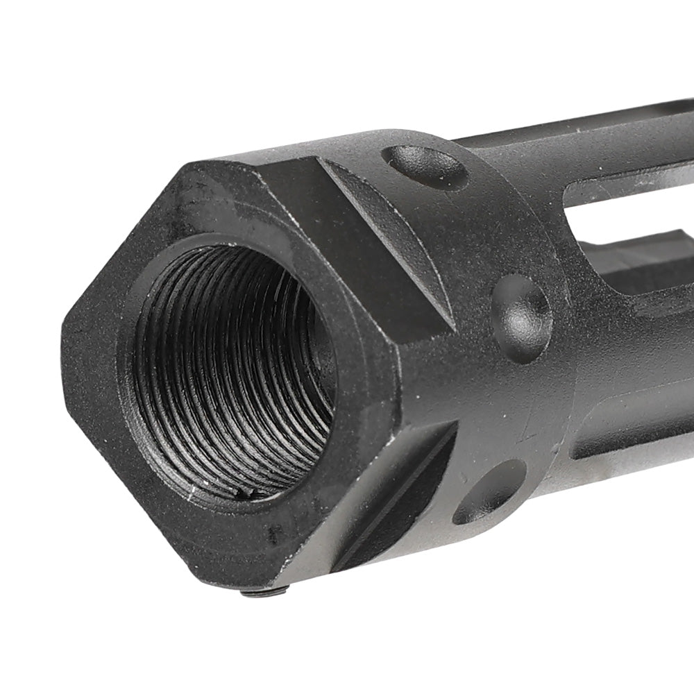 14mm逆ネジ仕様のアウターバレルに対応し、幅広いエアガンへ装着可能。