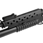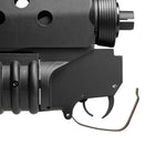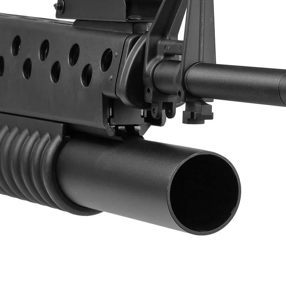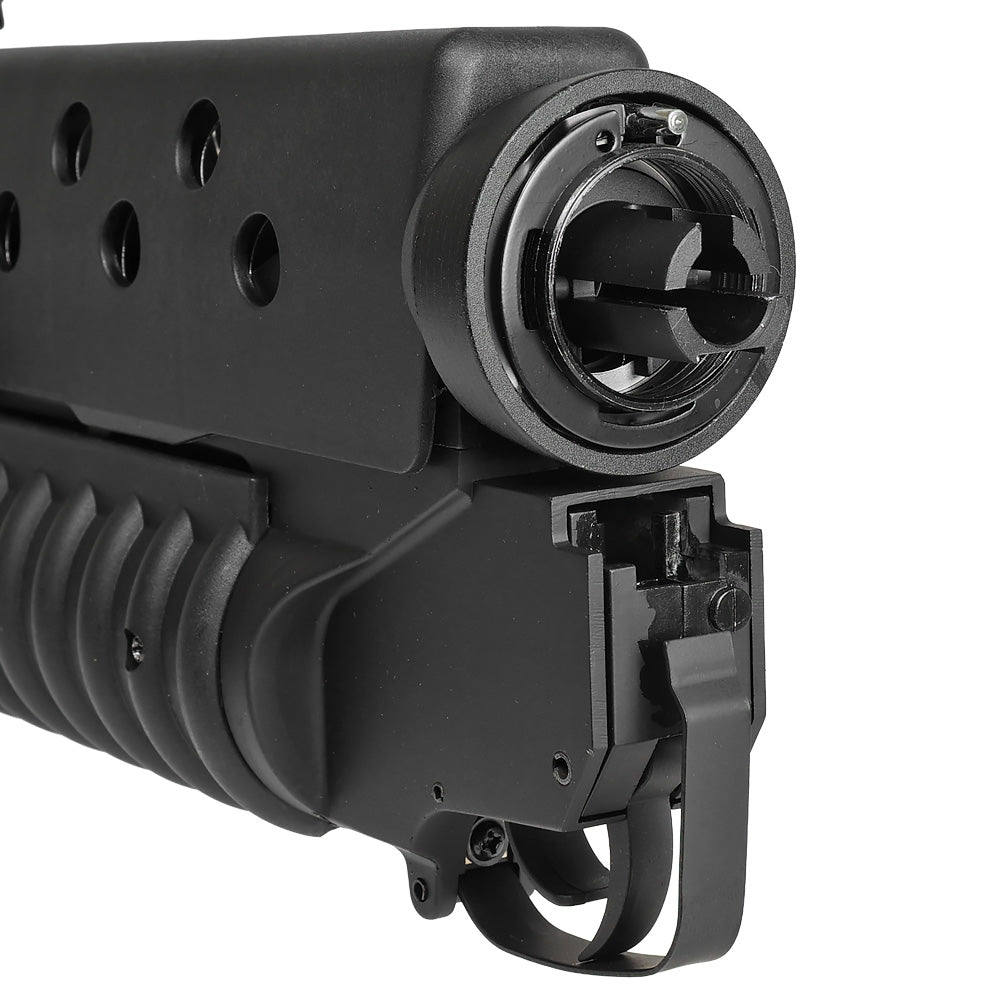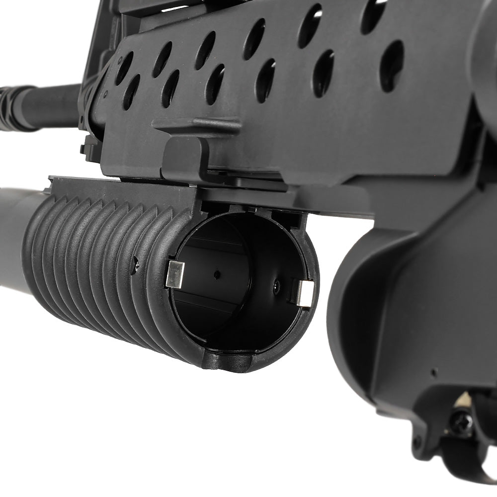実物のM203と同様にバレルを前進させて40mm弾を装填するリロード方式と、トリガーを引くだけで発射できるダブルアクションシステムを再現。