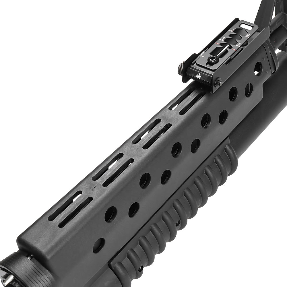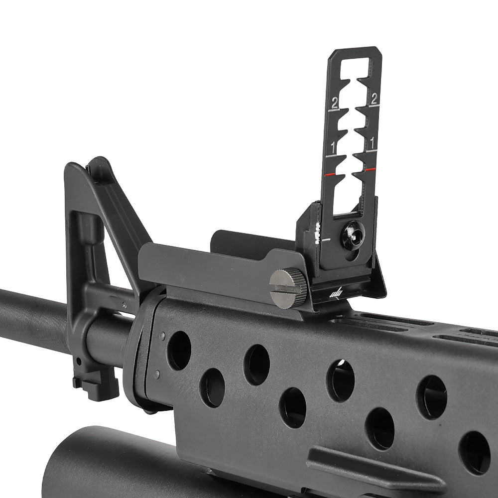 ハンドガード上部にはグレネード用のアイアンサイトを搭載しており、展開時のルックスも抜群です。