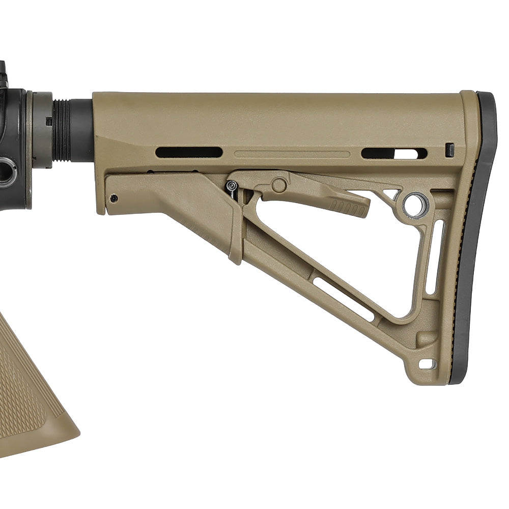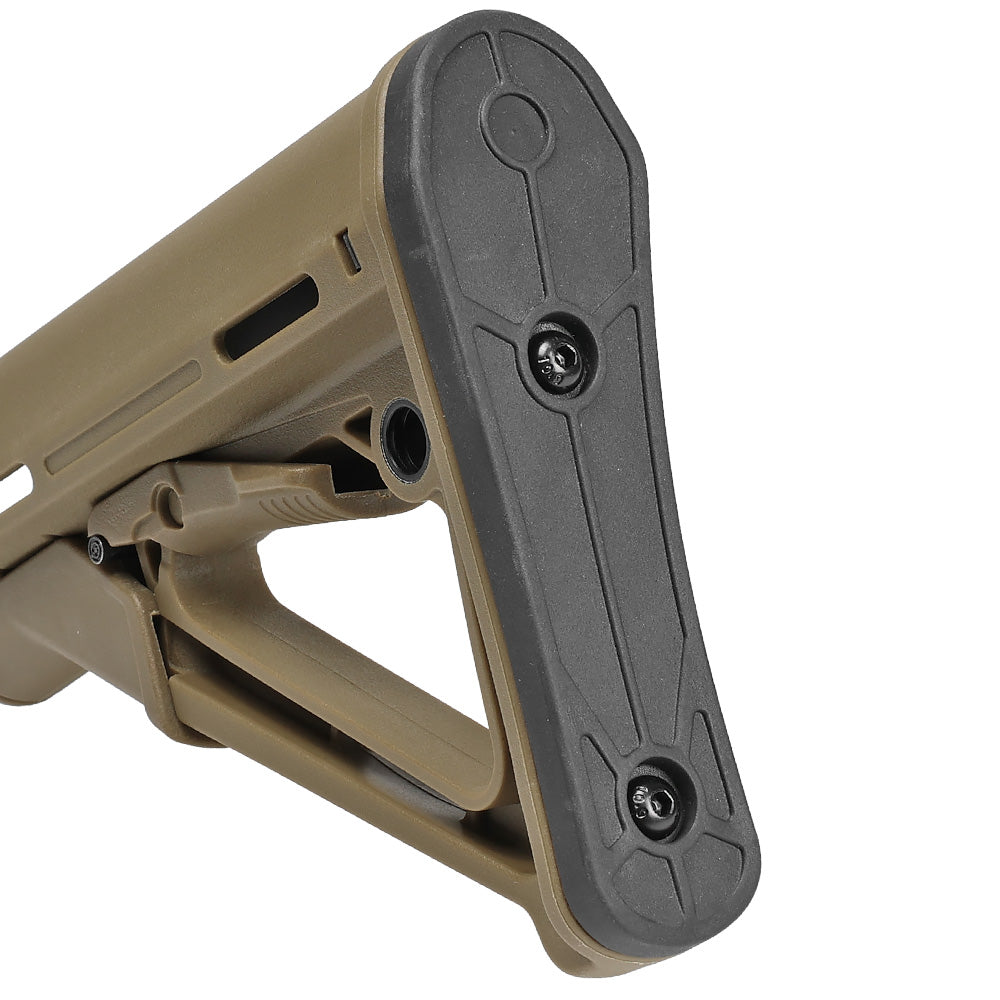 M4/AR15系で定番のカービンストックで、標準的なM4A1カービンから、カスタムされたM4まで、さまざまなライフルにスタイリッシュに装着可能です。