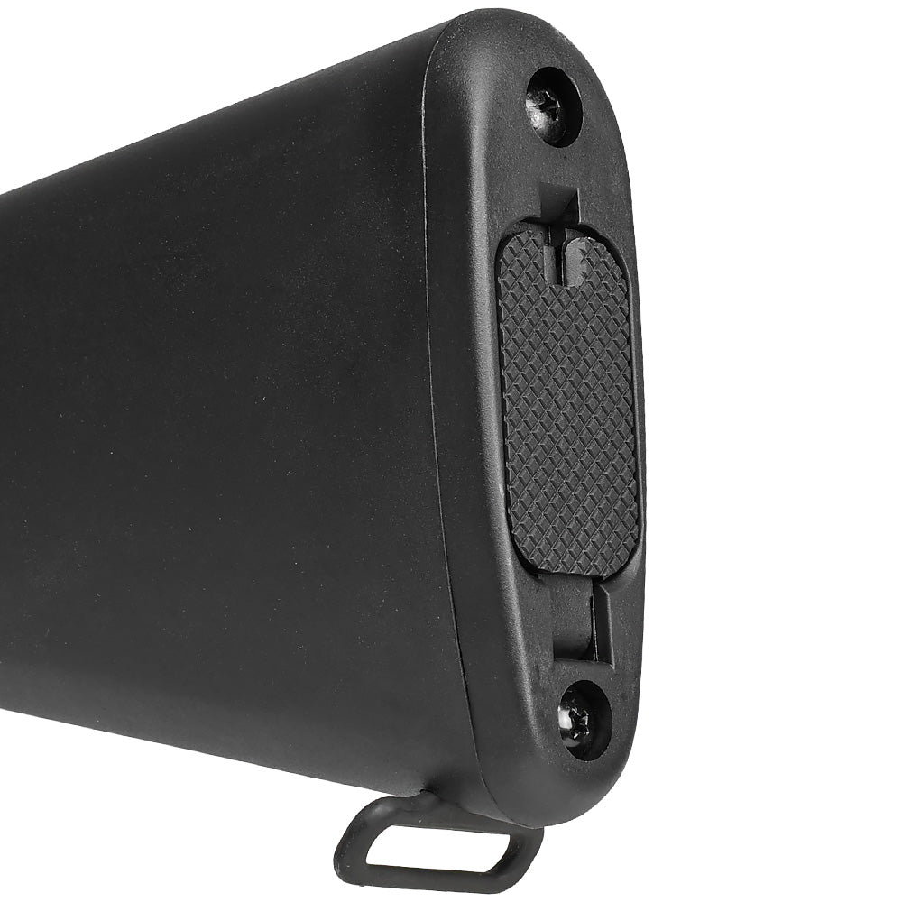 ストック内部は広い空洞設計で、さまざまなサイズのエアガン用バッテリーを収納可能。