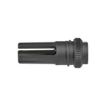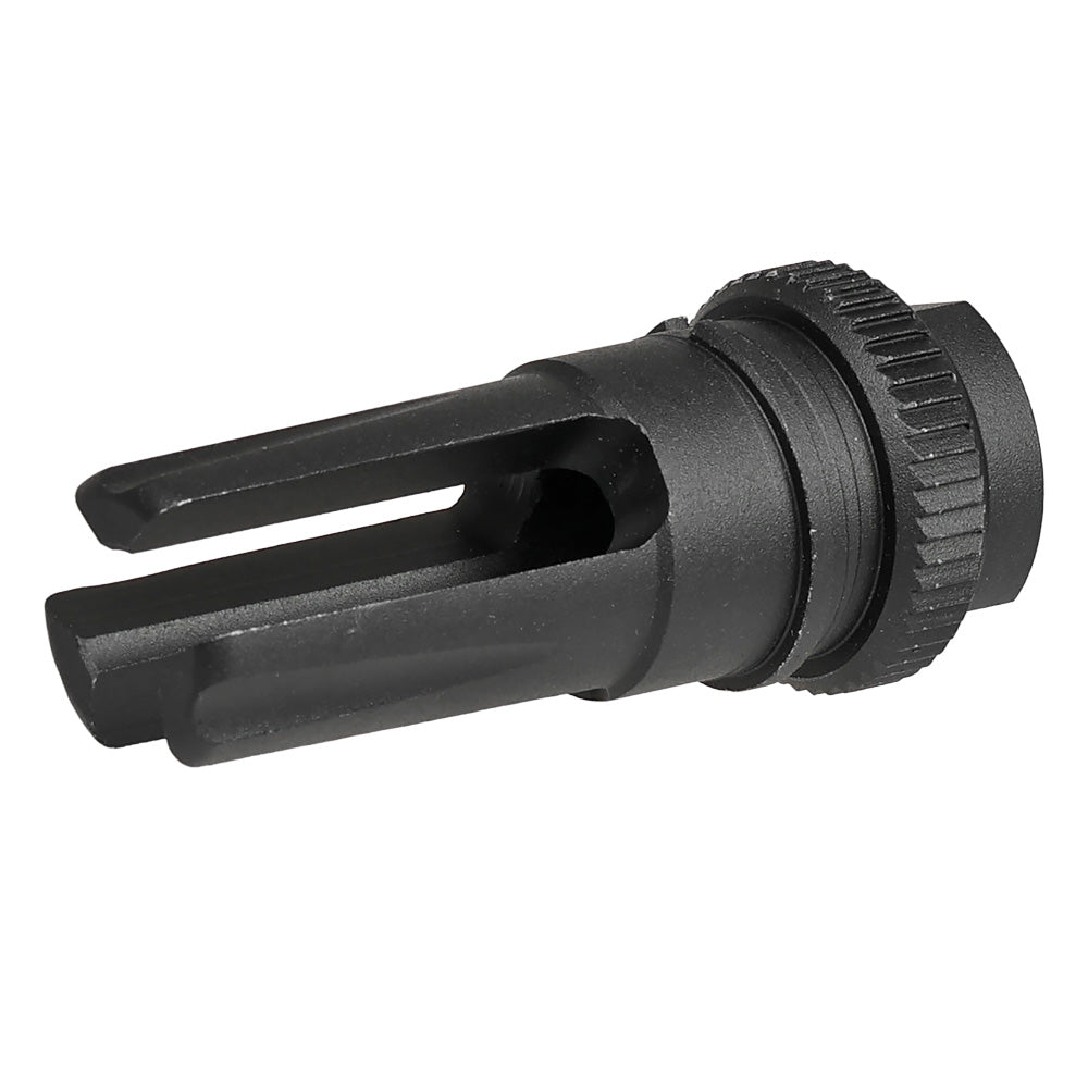 付属の専用フラッシュハイダーは先端が三つ又に分かれた「3prong」タイプ。