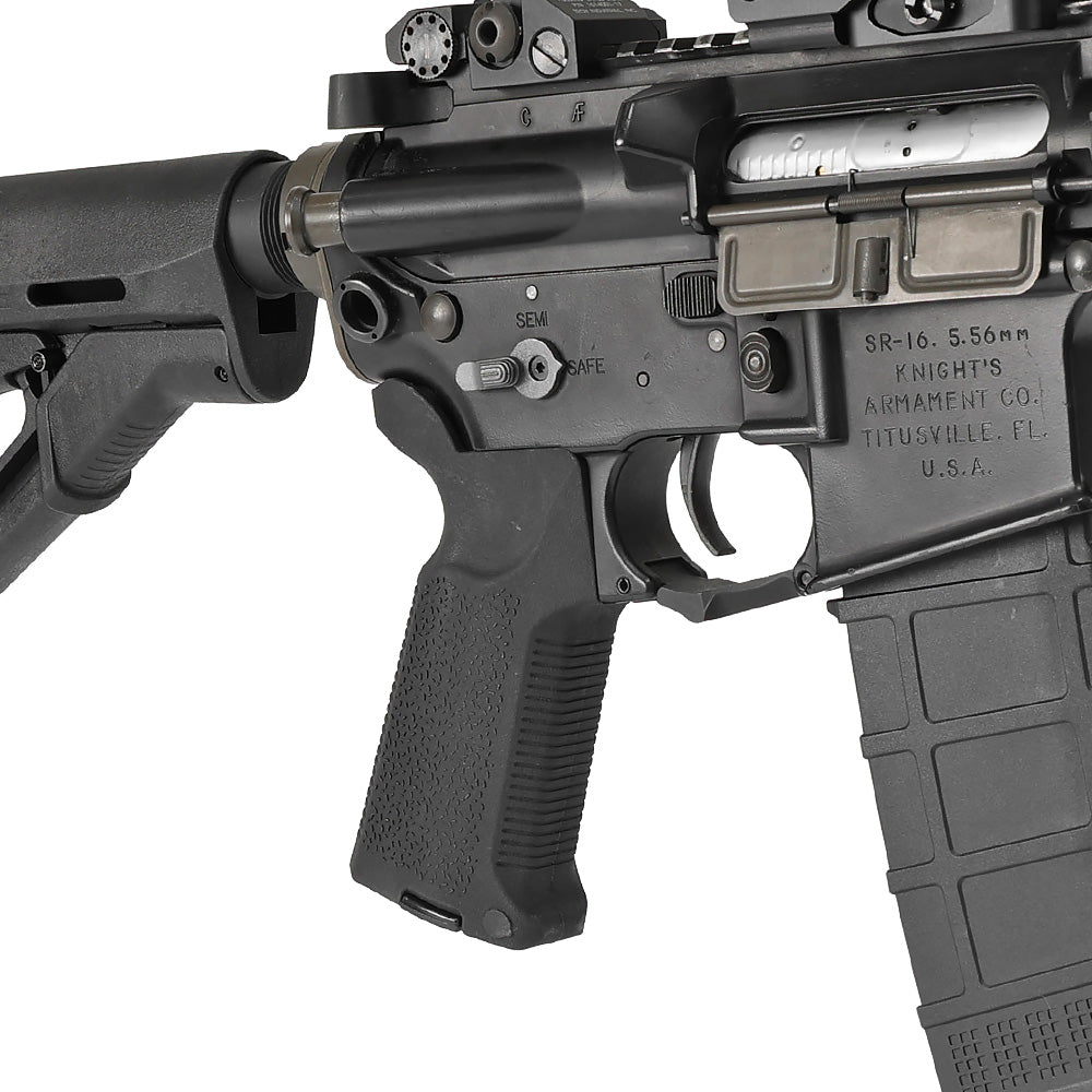 また、大型ビーバーテール(グリップ後部の反り上がり)、前面の滑り止めテクスチャ、セレクター操作を考慮した形状など、実物の特徴をリアルに再現しています。