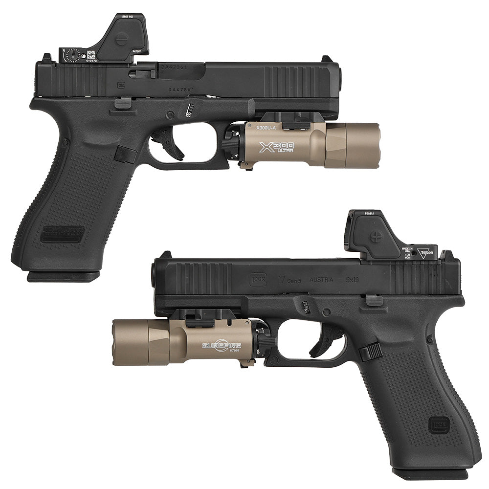 X300Uは「ユニバーサル規格」のアンダーレールを備えたハンドガン、または20mmレールへ装着可能です。