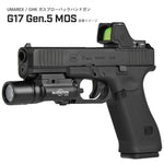 スライド下に収まりの良いシルエットで、ハンドガンの外観バランスを崩しにくいデザインです。