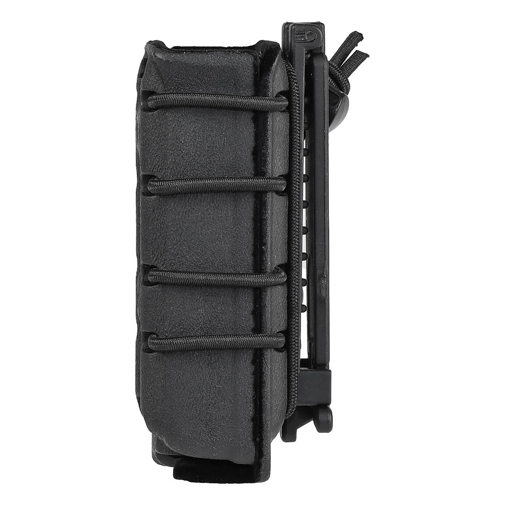 上部にフラップ(脱落防止のフタ)がなく、最速リロードに特化した抜き差ししやすい構造になっており、タクティカル界隈では主流となっているスタイルのマグポーチです。