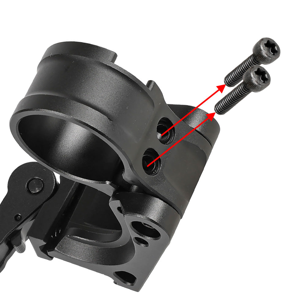 リング根元の2本のトルクスネジを緩め、マグニファイアを差し込み再度締め込むだけで装着完了!