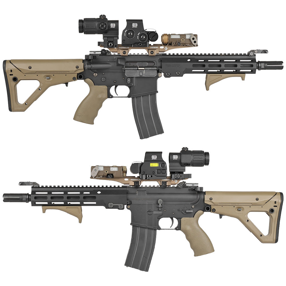 付属の拡張レールを取り付ければ、エイミングデバイスやマグニファイアを同一マウント上にまとめて搭載可能!